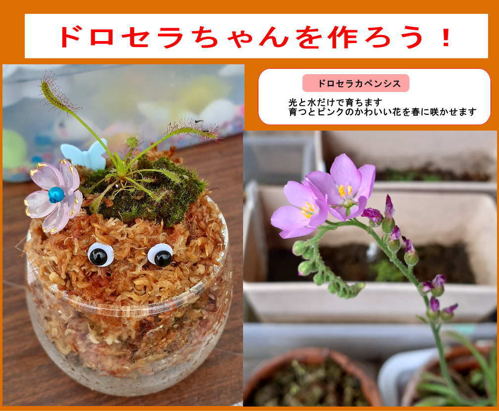 食中植物 ドロセラ・カペンシス(和名 アフリカガバノモウセンゴケ)を使って、ドロセラちゃんを作ろう!