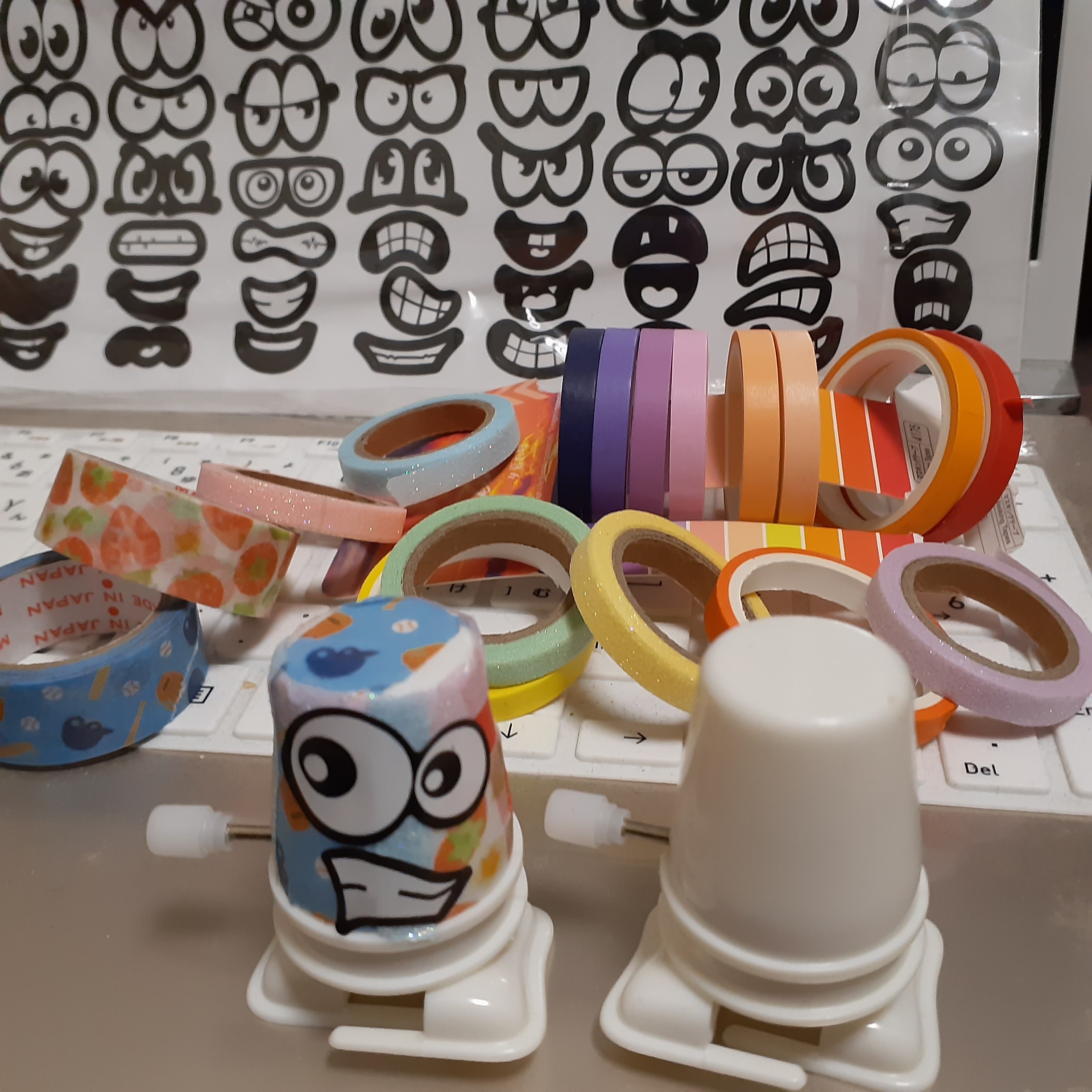 小さな動くロボットを、シールやマスキングテープで飾ってみましょう。
