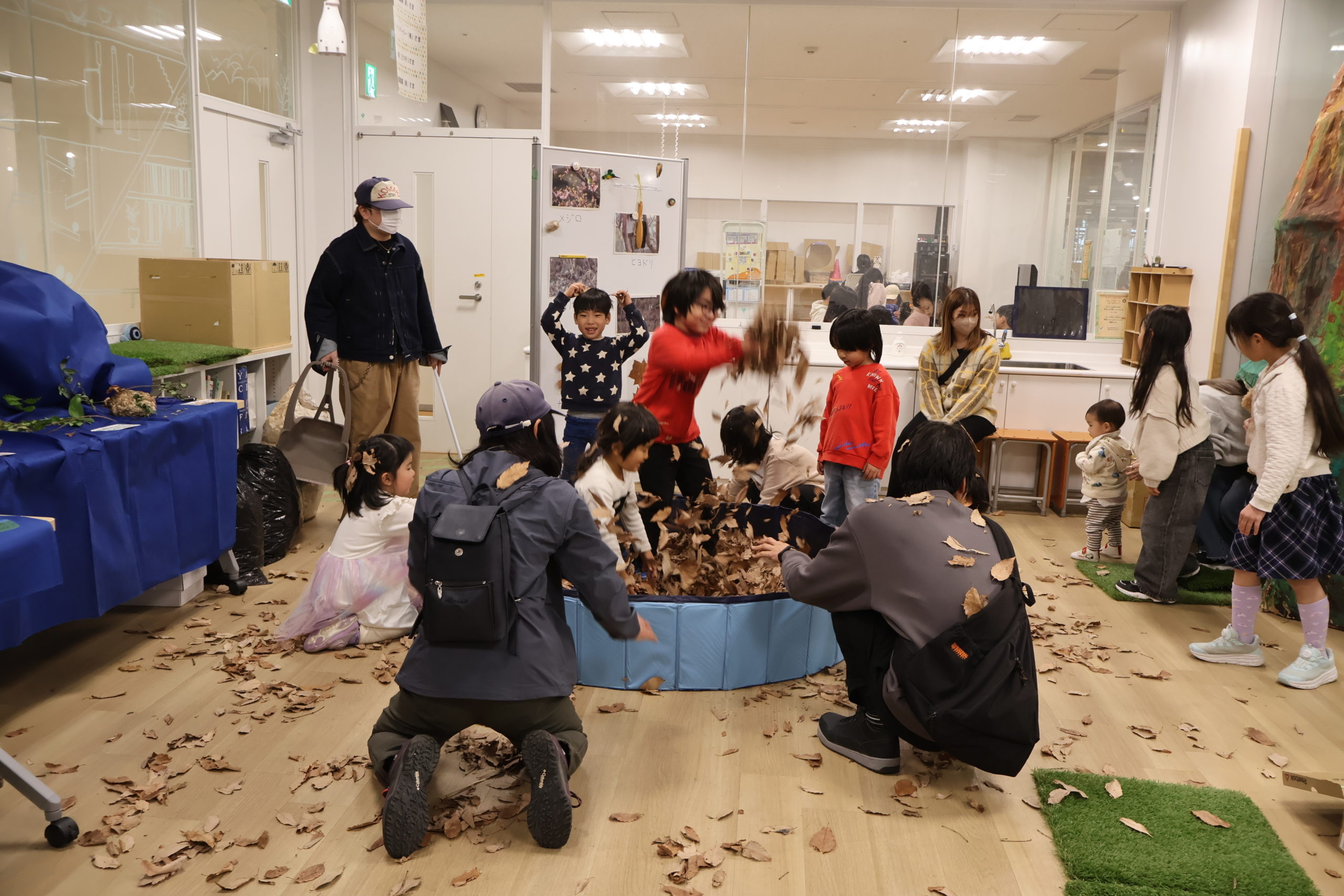 体験ひろばの一室が森に大変身! 様々な自然に触れられる体験型ワークショップ。今回のテーマは春! どんな種類の葉っぱや木の実があるかな?見つけてみよう! 10:20~12:20 / 14:20~16:30